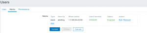 Finaly edit the Zabbix admin user and add a new media of type slack.